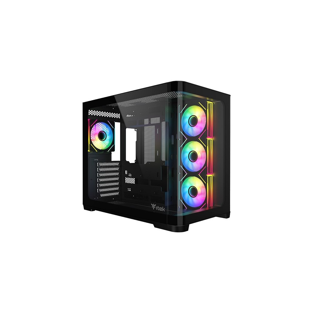 CASE ITEK DARK CAVE CURVED GAMING TOWER ATX, 4x12cm ARGB fan, 2xUSB3, Type-C, Curved Side & Front Panel Temp Glass